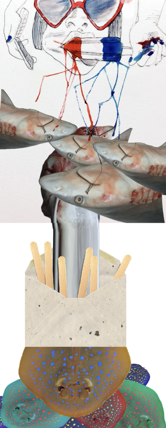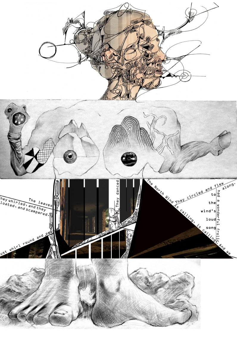 Exquisite Corpse is a playful method of collectively creating an image or poem. Each collaborator adds to the previous one's work without seeing it first, drawing or writing a specified part of a "corpse" within a set time period and visual frame but without a known theme or aesthetic. Withi this framework of collaboration, chance and imagination determine the composition. We are interested in the potential of both spontaneous and fragmented expression, unlocking subconsciouses of many artists simultaneously to create something incomprehensible, chaotic, bizarre and beautiful.